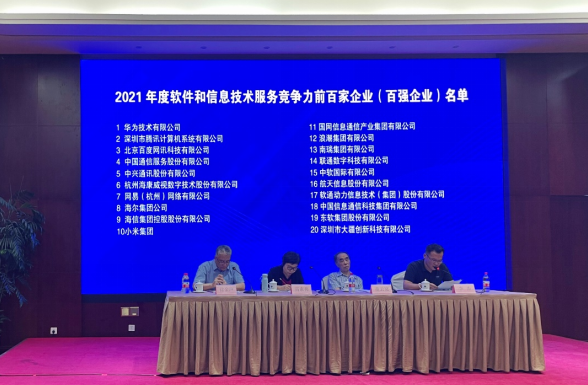 8月27日,2021軟件和信息技術服務綜合競爭力百強企業發布會在京隆重舉行,國網信通產業集團副總經理賴征田出席。國網信通產業集團再度入選百強企業榜單,排名上升至第11位。