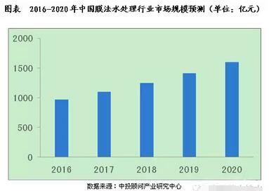 綜合多重因素預測,“十三五”期間膜法水處理行業產值五年復合增速大概落在10-15%間,若以13%進行計算,到2020年我國膜法水處理行業市場規模將達1600億元左右。