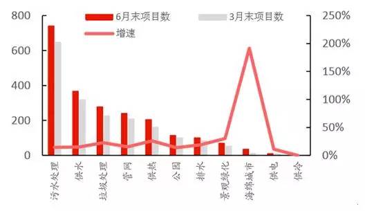 PPP在2016形成了熱點,截止2016年6月末,PPP全部入庫項目數量達9285個,總投資額達10.6萬億元;而環保方向的大概有1.4萬億元,在全行業中占比約13.2%;其中市政環保方向項目達2043個,較一季度末增長了322個;總投資金額達8919億元,增長了1633億元,增幅為22.41%。之所以舉足輕重,是因為市政環保類項目基本有相對成熟的盈利模式,在運營中能產生現金流,在PPP中屬于優質項目。
