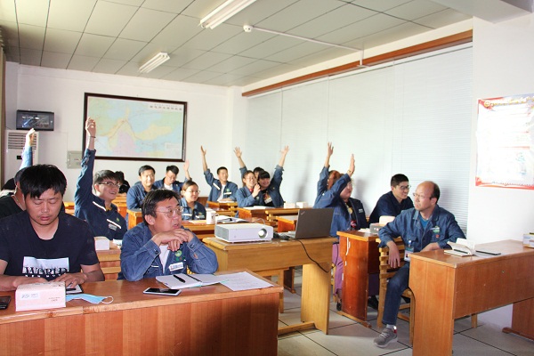 隨后,所安全員李燾同志又組織開展了安全知識競賽活動,知識競賽以口述問答與搶答形式進行,題目緊緊圍繞安全生產月主題,涉及知識面廣,內容豐富,實用性強,現場選手們認真對待每一題,搶答環節,現場氣氛尤其激烈,分秒必爭,以答對題的數量選出答題最佳選手。