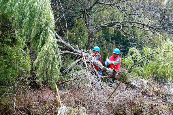 截止15日12時,經清障后所有受損線路全部恢復供電,該公司累計出動搶修人員56人次,清理樹竹286棵。