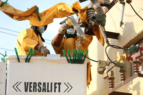 中國電力網訊 1月11日,在濰坊壽光市東羅橋村,國網壽光市供電公司帶電作業人員冒著嚴寒,對10千伏羅橋線東羅1號分支線004號桿損壞的跌落開關進行緊急搶修,全面消除線路運行缺陷,為農村客戶溫暖度冬提供可靠供電保障。