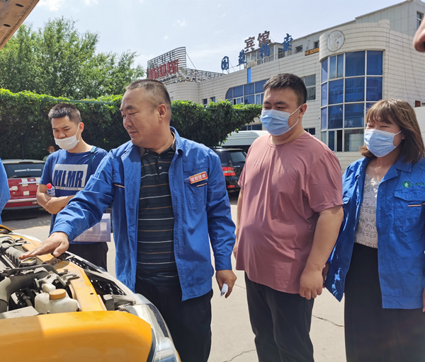檢查現場,忠聯汽修廠郝總邊檢查邊為分局駕駛員進行車輛日常維護及保養的講解。郝總講到駕駛員必須堅持進行日常維護,車輛日常維護包括堅持“三檢”,保持“四清”,防止“四漏”,每次出車前必須做到對汽車外觀進行檢查、保持車容整潔;對汽車燃油、輪胎氣壓等進行檢視補給;對汽車制動、轉向、燈光等安全部位和位置以及發動機運轉狀態進行檢視。駕駛員在郝總的講解下模擬了車輛日常維護。