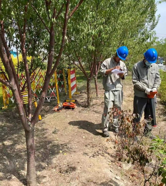 分局了解相關情況后,立即組織配電檢修試驗班人員攜帶儀器前往現場。經現場勘察了解,該校區擴建區域涉及原居民用房及垃圾場所在地,位于小區、商業樓和沙河一小北區中間地帶,用戶較多,地下線路比較復雜,且部分電纜位于擴建項目未拆除墻體內側,為保障電纜在施工過程中不受外力破壞、確保周圍用戶用電不被影響,工作人員在征得用戶同意后,對內外側整段電纜進行了探測。工作人員熟練調試儀器參數,沿著電纜起點逐步探測,耐心排除干擾信號,確保精準判斷電纜走向。頭頂夏日灼熱陽光,在兩個小時的緊張工作后,終于確定了該區域所有電纜路徑及埋深,此時已過了中午。該小學擴建項目負責人向分局工作人表達了感謝:“這么大熱天,真是辛苦你們了,要不是有你們這么專業的儀器,我們施工風險肯定會增加,工期也可能會有延誤,供電局的技術和服務真是沒的說。”