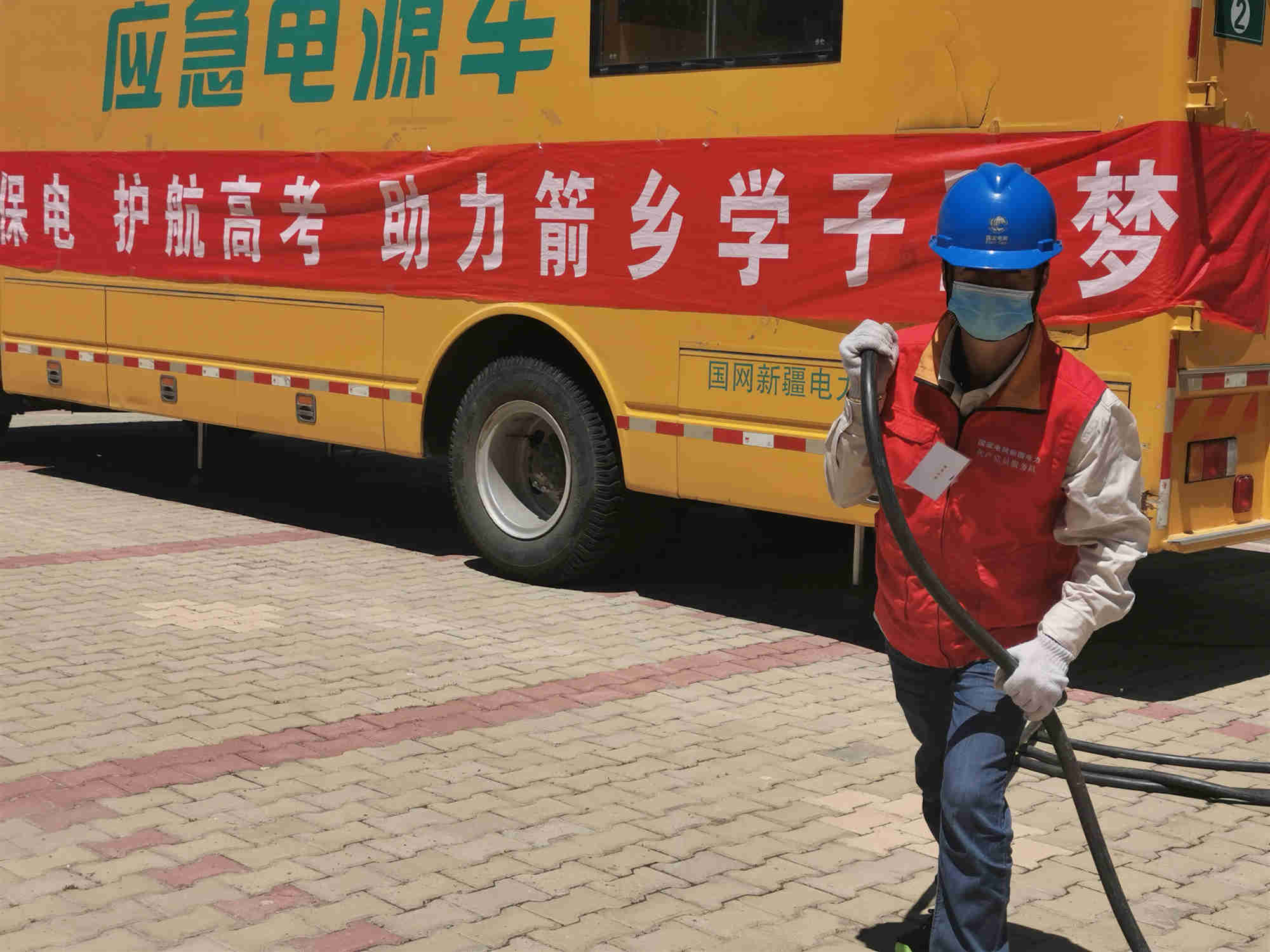 中國電力網(wǎng)訊 7月7日清晨6時,國網(wǎng)伊犁供電公司黨員服務(wù)隊員早早趕往轄區(qū)高考考點。到現(xiàn)場后兩人要對應(yīng)急供電車輛和線路設(shè)備做最后的檢查,確保考試期間電力供應(yīng)無憂。