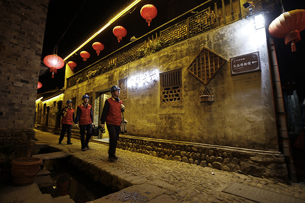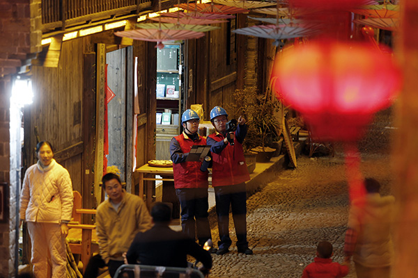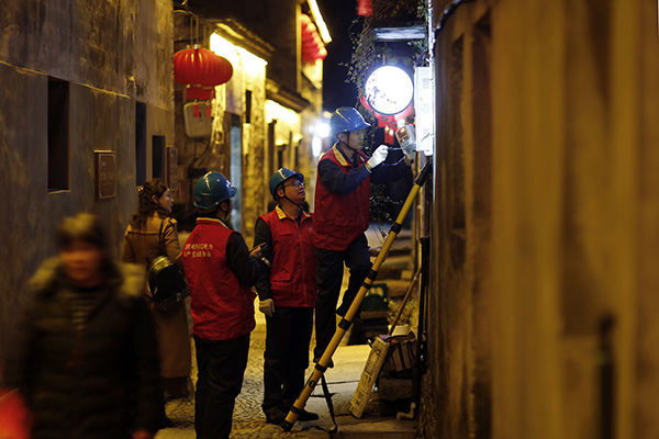 夜幕降臨,前童古鎮條條古巷的燈光開始亮起來,但古巷旁水渠里仍倒影著隊員們忙碌的身影。有了國網寧海縣供電公司工作人員不辭辛勞的保供電,留浙過年的新寧海人在前童古鎮這個元宵節將過得格外溫暖。