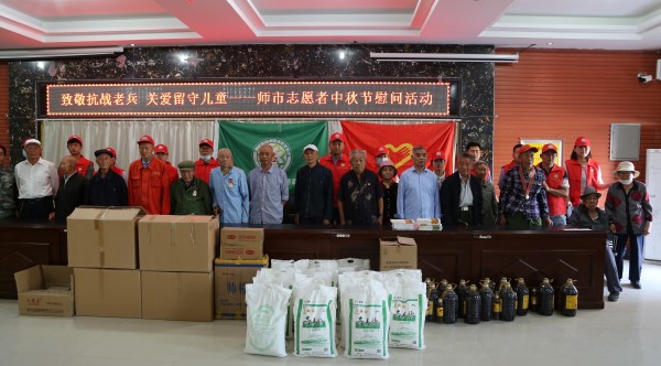 活動(dòng)期間,志愿者們還和老兵們、留守兒童們溫馨合影,并將第二師天泰電力志愿者協(xié)會(huì)申請(qǐng)中國(guó)人權(quán)基金會(huì)1.57萬(wàn)元資金購(gòu)置的月餅、面粉、清油,圖書、文具用品送給抗戰(zhàn)老兵及留守兒童們,讓這些曾經(jīng)為國(guó)家獨(dú)立,民族解放浴血奮戰(zhàn)的抗戰(zhàn)老兵,以及留守兒童們感受到來(lái)自社會(huì)的關(guān)愛。