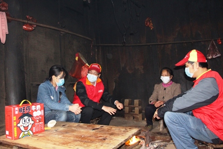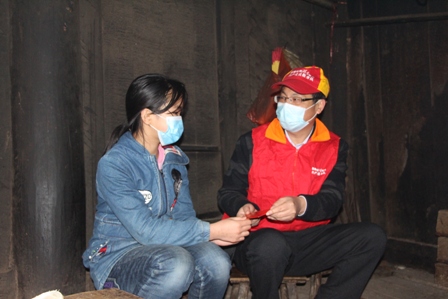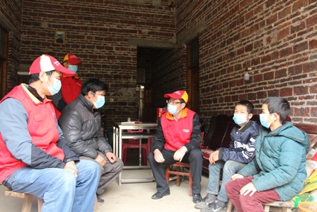 今年受新冠病毒疫情的影響,學(xué)校還未正常開學(xué),孩子們都在家中自行學(xué)習(xí),隊員采取逐戶上門探望的方式開展服務(wù)活動。在李志成、李志祥同學(xué)家中,兩兄弟正一起埋頭溫習(xí)功課,看到‘紅馬甲’叔叔們在這個時期里來到家里,兩兄弟高興得跳了起來,大聲的呼喊在對面山上挖筍的爸爸趕快回家。兄弟倆的媽媽離家出走十多年未回,爸爸又患上了間歇性精神病,三父子相依為命,生活來源主要依靠農(nóng)村低保補助和叔叔的資助,家境貧困令人心酸。看到兩兄弟興高采烈地拿著叔叔們給的‘紅包’,李爸爸眼中充滿了晶瑩和感動,緊緊地握著隊員們的手無法言語。李依婷同學(xué)是六年級班上唯的女生,文靜秀氣不愛言語,由于父母離異后紛紛外出,小依婷跟著年邁的奶奶共同生活,學(xué)習(xí)非常刻苦,成績在班上排名前列,隊員們?yōu)樗蜕狭伺D毯臀繂柦穑退黄鸱喠藢W(xué)習(xí)筆記,親切鼓勵她要努力學(xué)習(xí),好好報答奶奶的養(yǎng)育之恩···