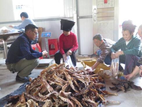 “供電公司扶貧隊到我們村后,鼓勵我們加工干筍、金銀花和葛根粉等,利用山里的寶貝創造價值”。 紫江村致富帶頭人趙新財指著裝袋打包的干筍興奮地說:“今年我按照駐村張書記的建議,開始搞春筍加工,雖然現規模還不大,加工1400多斤,也可賣到5萬多元,加上金銀花、葛根粉加工等收入,一年收入10萬元不成問題。”趙新財表示,山中氣候適宜種植黑木耳、香菇,他計劃成立專業合作社,購置烘干機,通過種植、加工、包裝一體化產業帶動周邊村民發家致富。