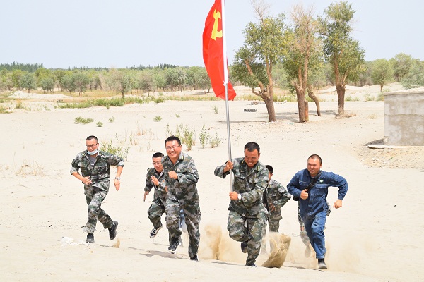 接著,大家從十六團交叉路口出發(fā),高聲歌唱著“沒有共產黨就沒有新中國”“團結就是力量”等紅色革命歌曲,沿河床徒步前行5公里,并穿插開展“沙漠沖拼”“坐地起身”“人椅”等豐富多彩的素質拓展比拼項目。一路上,大家熱情高漲、團結協(xié)作、奮勇爭先,團隊合作精神體現得淋漓盡致。雖然天氣炎熱,道路崎嶇,但沒有一個人退縮、沒有一個人掉隊,圓滿完成拓展訓練任務。“這次黨的生日活動別樣有趣,讓我們在繁忙的工作之余感受到素質拓展的趣味和意義,考驗和鍛煉了大家的意志,促進了黨員之間的交流、信任與默契,有助于提升黨員隊伍的凝聚力和戰(zhàn)斗力。” 黨員崔陽陽興致勃勃地說。