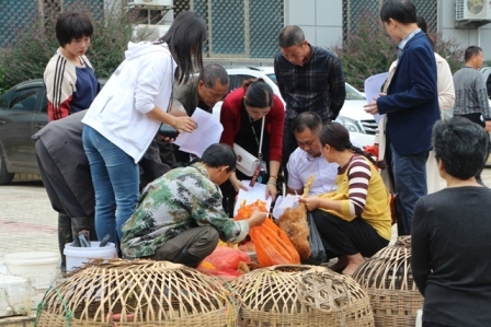 “這袋香米我要了,不要和我搶”,香米種植戶盧大哥的一袋袋大米還未從車上卸完,就被大家搶著訂購一空;“這筐香姜我要了,大爺快幫我裝袋稱重吧”,賣姜的陳大爺忙得不亦樂乎;“這只雞公好,我要了”···上午九時,隨著該公司活動指揮人員宣布現場購銷活動正式開始,大家爭先恐后的圍到早早看中的農產品攤前開始“搶購”,根本等不及農戶們好好宣傳自己家的產品,一樣樣、一袋袋農產品被熱情的采購者們“收入囊中”。現場采購活動開始一個小時不到,農戶們帶來的10多樣價值約3萬元的農產品就銷售一空,同時,還接受了預購訂單5000余元。
