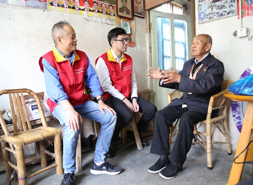 中國電力網訊 11月19日上午,浙江慈溪市供電公司紅船共產黨員服務隊王軍浩、宋鑫等黨員志愿者,帶著水果、牛奶等慰問品,懷著對退伍老兵的崇敬之情,來到坎墩街道三群村,走訪看望了九旬退伍老兵傅萬久。