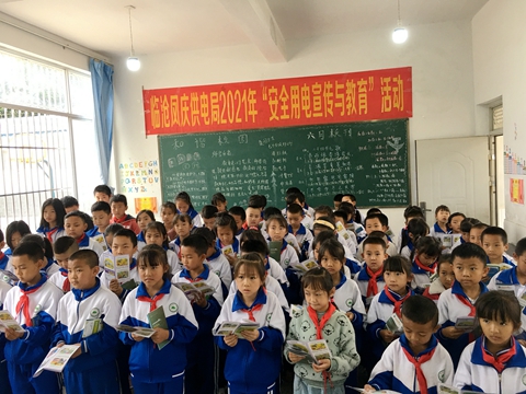 在鳳山鎮上寨小學借助教室電子屏播放安全用電宣傳動畫片,使小學生觀看興趣濃厚,營業員吳春艷使用和藹生動的話語向學生講解《中小學生安全用電事故案例警示》、《農村安裝漏電保護器常識》、《家庭節電》、《電力設施保護》等知識,營造了活動氛圍;黃仕國所長為學生講解了釣魚與用電安全的知識、安全帽的重要性、尊重生命;其他參與員工與學生開展安全用電知識問答有獎互動活動,使學生們能集中精力和提高興趣,快速掌握用電安全知識。活動最后,供電所向學生贈送學習用品,學生代表表示會將學到的知識傳遞到家庭成員,確保自身用電安全;學校負責人對安全用電活動的開展表示感謝,認為供電局是負責任的企業。