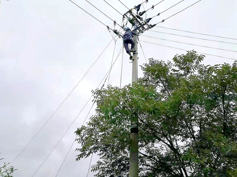 10千伏虎京線梯后山支線,羊圈山配變380伏羊圈山TB3.2號桿(四方桿),倒桿斷線,配電管理所報修人員樂禮培接到95598報修信息,與客戶聯系后,趕到現場查看,是380伏四方桿,倒桿斷線。從此桿接下戶線3戶,隔離電源,報告領導,需要換桿換線搶修。配電管理所任海忠主任立即組織施工隊到現場進行勘察,確定施工方案,審批搶修物資。受災戶楊徳久跟工作人員說:“昨晚上一夜下大雨,6點左右聽到房后蹦的一聲響,我以為是打雷,起床開燈,燈不亮,要燒水,電磁爐也沒有反應,再轉到電表旁看看總閘給跳,嚇我一跳,電表箱懸在空中,電桿倒了,等緩過神來才打95598報修電話。你們報修師傅來到,我心才落下!現在,我高興!感謝供電公司,感謝各位師傅,把電桿換成高的,總線也換成巴掌寬的叫什么線該?”凃師傅告訴他,這叫集束導線。不單只是他們這里,在端午節期間配電管理所消除了5個安全隱患,提高了供電可靠性。