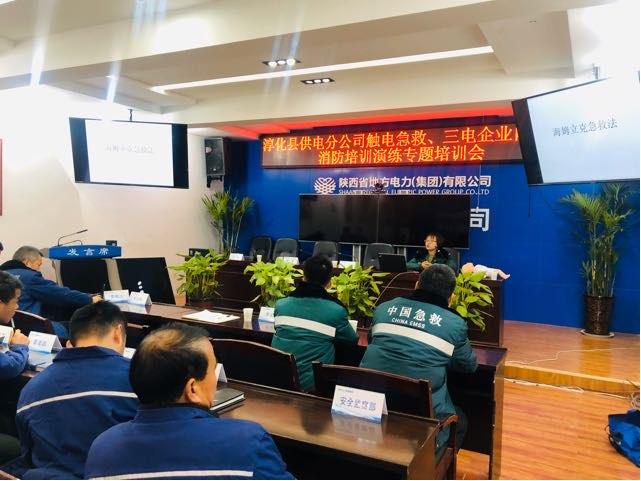 本網訊(通訊員李娟)為進一步推動依法落實消防安全宣傳教育及應急救援工作責任,增強公司消防安全管理和防控火災的能力,提高全員消防及應急救援安全意識,11月28日下午,淳化供電分公司在五樓會議室開展觸電急救、三電企業內保暨消防培訓演練專題培訓會,公司領導,機關全體人員及班站所長參加培訓。