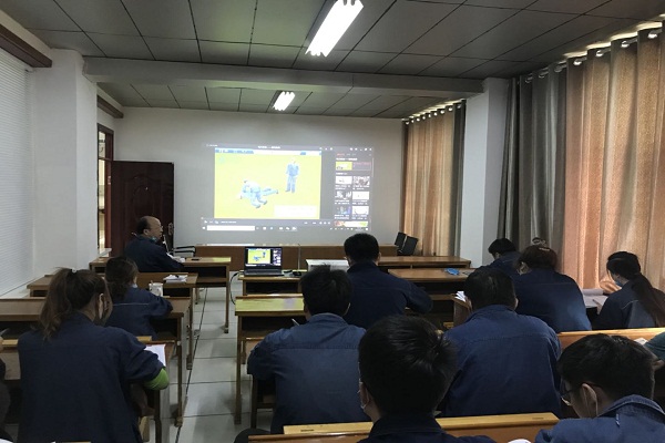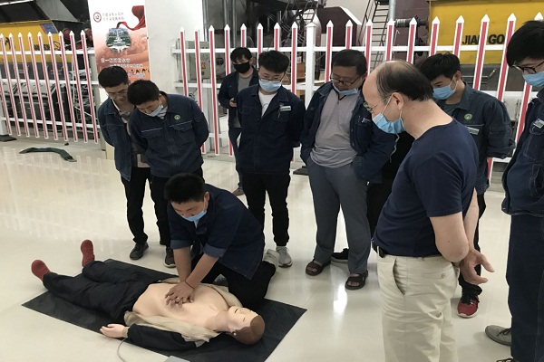 安全員李燾首先帶領大家觀看視頻教程,把心肺復蘇的整個過程,每一個細節都進行了認真的學習,隨后在模擬人上進行實際操作。安全員一邊做示范一邊講解如何掌握基本心肺復蘇的操作要點及注意事項,并通過對“模擬人”實施心臟復蘇搶救操作進行了演示,包括判斷是否喪失意識、判斷有無自主呼吸、判斷有無脈搏、進行胸外心臟按壓、清理口腔異物、開放氣道、人工呼吸等操作要領的示范。