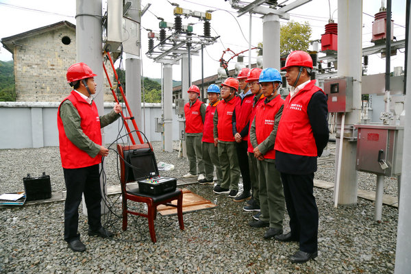 中國電力網訊 1月18日,在35千伏洞口變電站工作現場,國網樂安縣供電公司營銷黨支部組織各供電所營銷副所長對洞楓線發電上網計量裝置進行現場校驗。這是該公司全面加強黨建引領,通過“黨建+”現場培訓提升隊伍素質的一個場景。