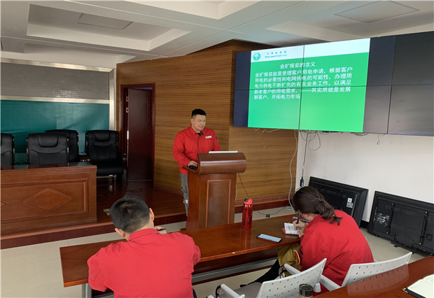 隨后,分局二級工程師劉福軍為大家帶來了以“配電網架空線路檢修及驗收”為主題的生產技術課程,他主要對線路桿塔各項設備參數、具體安裝位置、安裝規范等技術問題進行講解,同時針對學員提出的種種問題,進行了詳細的解答,使全體青工對線路檢修及驗收有了更深入地了解。緊接著,由分局用電檢查班青工郭介愚為大家講解了以“業擴報裝”為主題的用電營銷課程,他通過PPT結合實際案例的方式,深入淺出的講解了業擴報裝具體流程及低壓供電方案的編寫,使分局青工營銷業務能力有所提升。