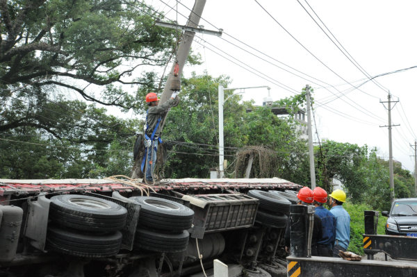 中國電力網訊 9月19日上午9點20分,由于一場意外的交通事故,10千伏夢谷線76#桿被一輛側翻的貨車壓倒。而10千伏夢谷線主要承擔廣昌縣夢谷電商創業園以及附近答田村數個村小組的供電任務,情況緊急,國網廣昌縣供電公司甘竹供電所在接到搶修工單的第一時間立即啟動應急搶修預案,組織了一只數十人的搶修隊伍前往事故發生地點,并在趕往現場的同時,安排相關臺區管理員做好停電用戶解釋工作。