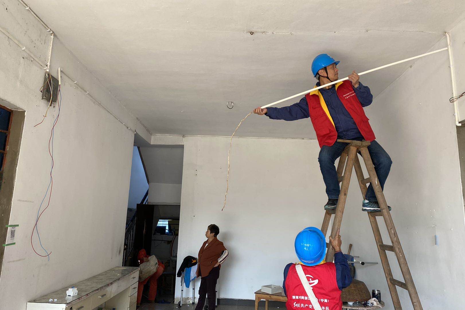 中國電力網訊 “把這個插座往下移,這樣方便我家老倌用電,還有樓上燈壞了,也幫忙換下......”10月23日,看到國網寧??h供電公司電建支部黨員服務隊來到家里,殘疾老人王圣澤的老伴顯得格外激動。因為家里拉成“蜘蛛網”一樣的電線這下能得到徹底整理了,而且還可以根據殘疾人的需求改造插座和開關的位置。