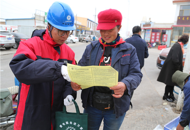 在活動現場,工作人員通過設立展板、發放宣傳材料、現場答疑等方式,走訪商戶、居民,向用戶介紹供電企業優化營商環境舉措、電價政策、“三零三省”服務等內容,并現場指導客戶通過手機使用“蒙電e家”APP辦理相關業務。每到一處,分局員工都十分耐心的宣傳講解日常生活中的安全用電常識和常見的用戶側用電故障發生原因和處理方式。對安裝新式智能電能表的用戶,詳細講解了電表的充值方式、使用方法和注意事項等。此外,分局員工在走進臨街商鋪時,還向商業用戶宣貫一般工商業降價政策和疫情期間電價優惠政策、降價措施及時限;向用戶講解了《電力設施保護條例》《電力法》等相關規定。此次宣傳活動,共走訪了居民和商戶近百戶,發放和張貼安全用電、降價信息等宣傳圖冊一百余冊。