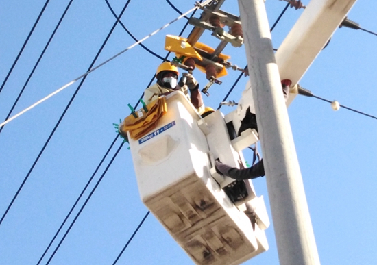 中國電力網訊 1月7日,濰坊壽光地區氣溫驟降至零下19攝氏度,國網壽光市供電公司帶電作業人員在10千伏金華線19號桿,為臺頭鎮某防水企業進行更換隔離刀閘作業,及時消除線路缺陷,保障企業客戶寒潮期間安全可靠用電。