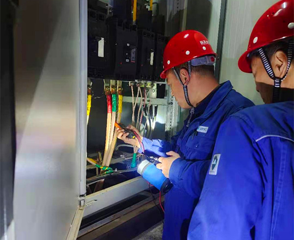 中國電力網訊 3月26日晚,朦朧夜色中,一群頭戴安全帽,身穿藍色地電工裝的人員出現在城南專變客戶的計量裝置旁邊,在強手電光的照耀下,大家相互配合、緊密協作,檢查每根接線,用鉗型電流表測量電流,做好相關記錄......。