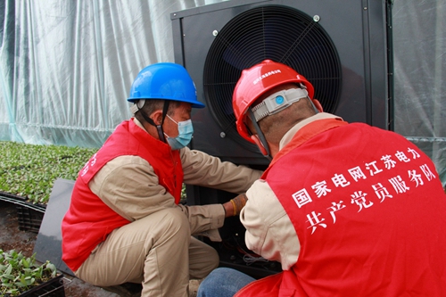 中國電力網訊 5月6日,江蘇省東??h供電公司花香黨員服務隊員來到雙店鎮三鋪村花農大棚,為棚內鮮切花照明系統、智能滴灌、溫控設備開展義務消缺,確?;ㄞr大棚用電可靠。