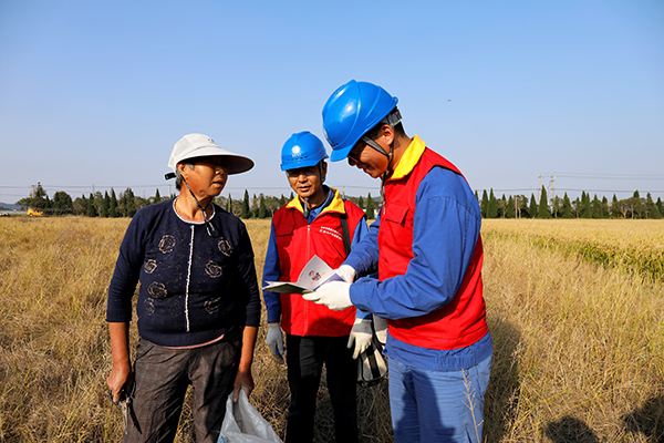 “師傅,請(qǐng)收耕作業(yè)時(shí)注意田埂旁的電桿與線(xiàn)路,以防碰撞發(fā)生危險(xiǎn)!”10月27日,國(guó)網(wǎng)舟山供電公司定海供電分公司來(lái)到馬岙開(kāi)展安全用電宣傳,為村民排查處理安全隱患,將供電服務(wù)送到秋收秋中田間地頭。