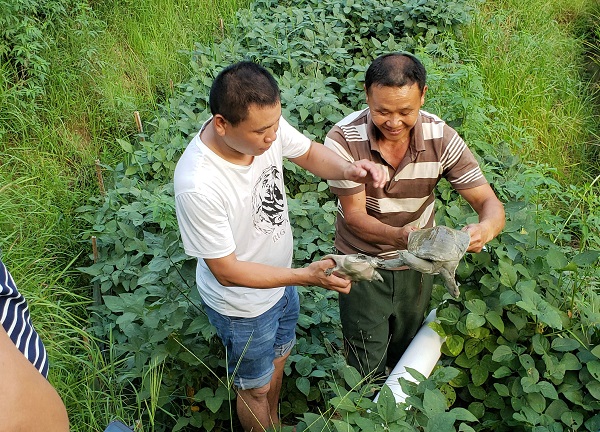 谷崗鄉登仙橋村早禾嵊組貧困戶歐陽高平在樂安縣公司的幫扶下養殖甲魚