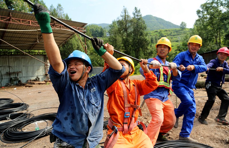四川通江供電公司高溫天氣電力員工作業忙