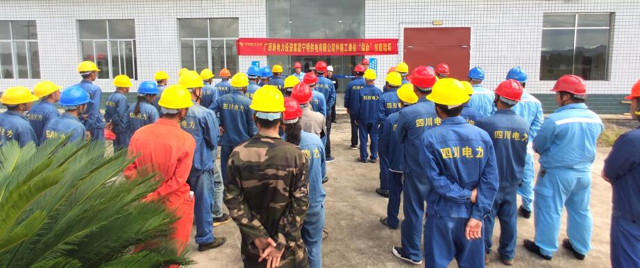 8月14日,南方電網廣西新電力集團寧明供電有限公司外施工單位人員集中參加“保命”技能培訓。(莫晶晶 攝)