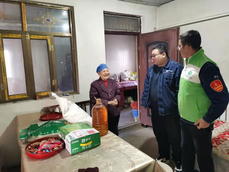 志愿者首先為楊奶奶送上牛奶、米面油等生活用品和真摯的祝福,對老人家中用電設備和線路進行了檢查,隨后跟楊奶奶聊起了家常,詢問了楊奶奶日常的生活情況,進行了安全用電常識的普及,并對老人家的小院子進行了簡單打掃。