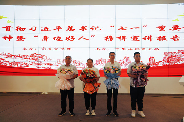 報告會上,四位宣講人用質樸的語言、鮮活的事例,講述了一個個溫暖感人的真實故事——在平凡崗位上用堅韌與執著為電網安全撐起了一片晴朗的天空,對電力事業有著無限忠誠的越志軍;用一顆真誠心充當“武器”,用淋漓的汗水支撐起使命,用堅定的意志承擔起疫情防控工作的電力人吳飛云鵬;工作中兢兢業業、勤勤懇懇,生活中助人為樂、傳承美德,用實際行動踐行著電力人的擔當與奉獻的楊俊芝;九年征程一心堅持,發揮基層黨組織的戰斗堡壘作用,為社區居民解決難事,為受難群眾提供幫助的康煒。他們的故事感人至深、催人奮進,生動呈現了“身邊好人”的愛舉、壯舉、善舉、孝舉、義舉引起了現場強烈共鳴,感染著現場所有人。宣講結束后,志愿者們為到場的“身邊好人”獻花,大家紛紛表示要學習“身邊好人”,傳遞榜樣力量,奮斗新時代。