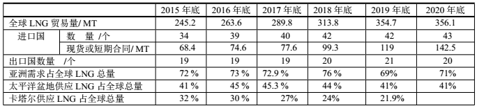 根據國際液化天然氣進口國組織(GIIGNL)2021年的報告,2020年全球LNG進口量達到356.1MT,由于疫情的影響,比2019年354.7MT僅增長+0.4%。