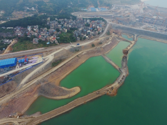 魚道圍堰沿黔江右岸岸灘平行布置,圍堰總長746.68米,填筑總量335634立方米。魚道圍堰斷面從上而下分為水下、水上兩個填筑區。因圍堰軸線向深水區偏移,魚圍堰填筑時土石流失量增大,魚道圍堰施工填筑難度增大。為搶在汛前完成魚道臨江段施工任務,項目部提前規劃部署,積極與參建各方協調溝通,制定切實有效的施工方案。施工期間,項目部克服了工作面狹窄細長、施工難度大且危險性高等困難,歷時21天安全完成181米長,19.2米深的深水區填筑,提前完成圍堰填筑任務。