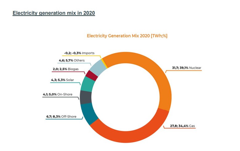除了擴大可再生能源發電能力外,2020年電力標志是核能發電量下降,滿足了比利時39.1%的電力需求,燃氣發電廠電量趨于穩定,以及電力進出口之間接近平衡。