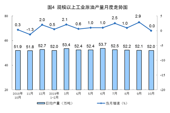 10月份,原油生產1611萬噸,產量與去年同期基本持平;日均產量52.0萬噸,環比減少0.1萬噸。1—10月份,原油生產15925萬噸,同比增長1.1%。