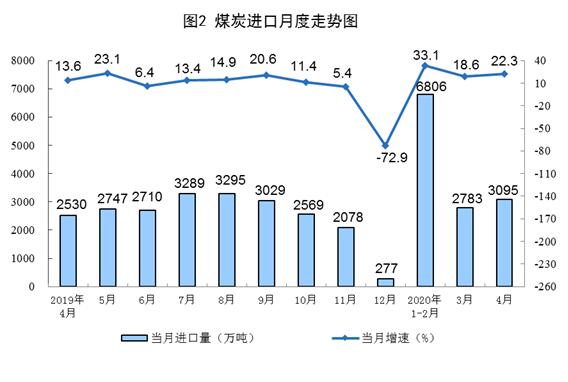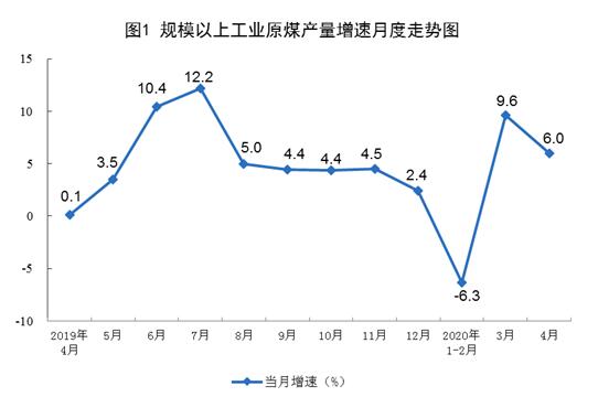 原煤生產增長較快。4月份,生產原煤3.2億噸,同比增長6.0%,增速比上月回落3.6個百分點;日均產量1074萬噸,環比減少14萬噸。1—4月份,生產原煤11.5億噸,同比增長1.3%。