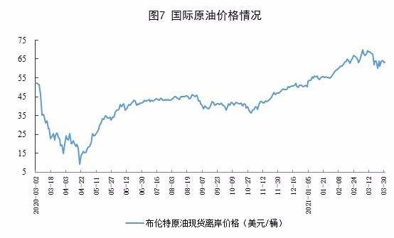 原油進(jìn)口大幅增長,國際原油價格基本穩(wěn)定。3月份,進(jìn)口原油4966萬噸,同比增長20.8%;一季度,進(jìn)口原油13923萬噸,同比增長9.5%。3月31日布倫特原油現(xiàn)貨離岸價格為63.52美元/桶,比3月1日的64.56美元/桶下跌1.6%。