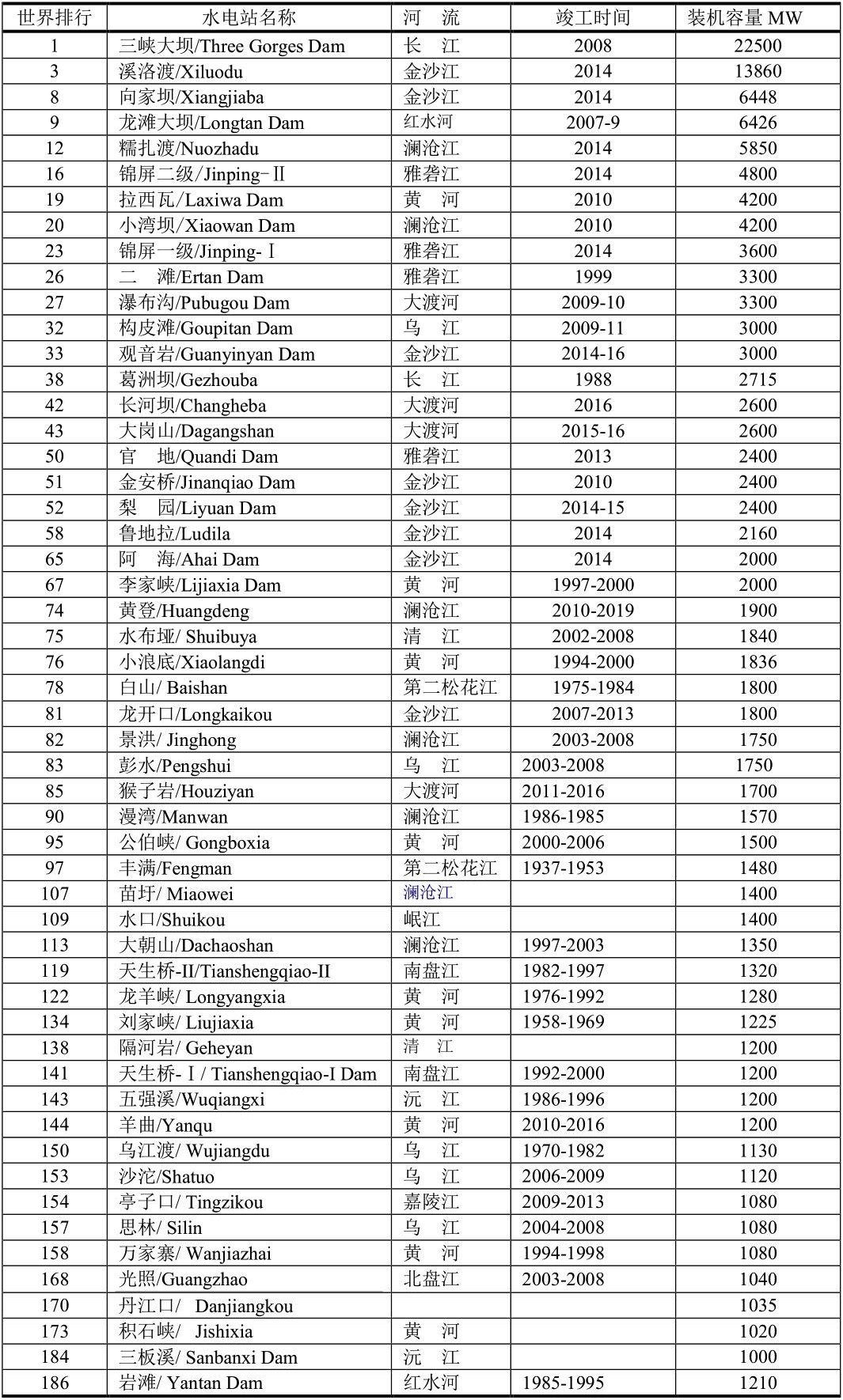 世界上水電站裝機容量在1000MW以上的有187個水力發電站中,其中中國占據了29座,居世界之首。在中國29座水力發電站之中,長江流域就占有16座。