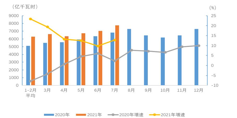 1-7月,全國全社會用電量47097億千瓦時,同比增長15.6%,其中,7月份全國全社會用電量7758億千瓦時,同比增長12.8%。