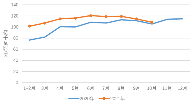 10月份,化工行業用電量416億千瓦時,同比增長1.3%,增速比上年同期回落8.3個百分點;建材行業用電量350億千瓦時,同比下降7.0%,增速比上年同期回落22.6個百分點;黑色金屬冶煉行業用電量502億千瓦時,同比下降5.6%,增速比上年同期回落18.1個百分點;有色金屬冶煉行業用電量562億千瓦時,同比增長6.1%,增速比上年同期回落2.8個百分點。
