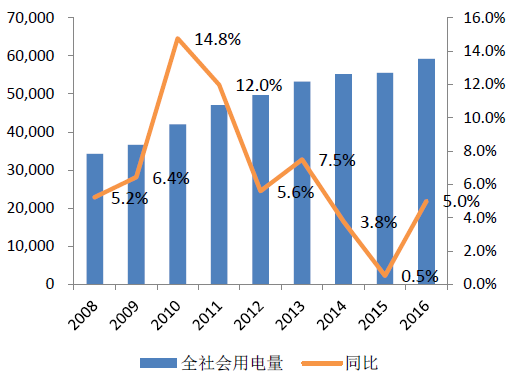 第二產業用電量全年同比增長5.1%,高技術及裝備制造業用電量增速領先。2024年,全國第二產業用電量6.39萬億千瓦時,同比增長5.1%;其中,制造業用電量4.79萬億千瓦時,同比增長5.1%。其中,高技術及裝備制造業2024年用電量同比增長10.3%,明顯高于同期制造業平均增長水平,制造業延續轉型升級趨勢。“兩新”政策推動設備制造等行業用電較快增長,2024年電氣機械和器材制造業(14.5%)、計算機/通信和其他電子設備制造業(13.7%)、汽車制造業(11.0%)、儀器儀表制造業(10.9%)四個行業用電量增速超過10%。消費品制造業2024年用電量同比增長5.7%,消費品制造業中的12個子行業用電量均為正增長;“兩新”政策推動部分消費品行業用電較快增長,食品制造業(11.4%)、文教/工美/體育和娛樂用品制造業(9.5%)、家具制造業(8.2%)3個行業用電量同比增速超過8%。四大高載能行業2024年用電量同比增長2.2%,增速比上年回落3.1個百分點,其中,黑色金屬冶煉和壓延加工業、非金屬礦物制品業用電量同比分別下降1.0%、2.4%,有色金屬冶煉和壓延加工業、化學原料和化學制品業用電量同比分別增長4.3%、6.5%。