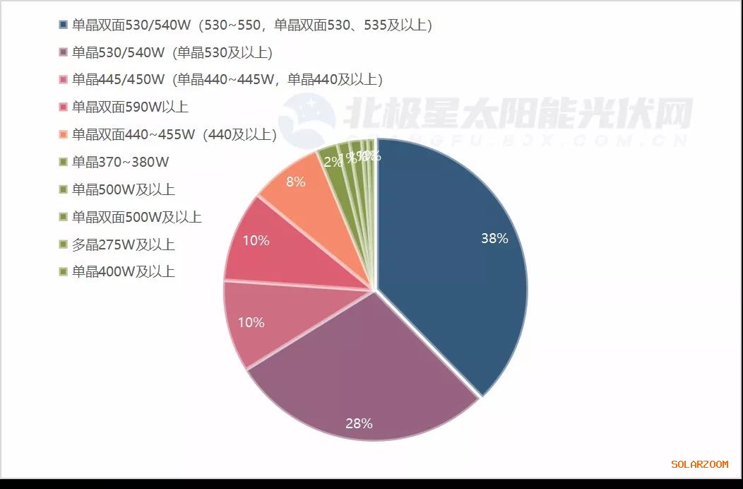 具體來看,2021年1月12日,中核匯能率先開標2021年度光伏組件集中采購,隆基、東方日升、天合3家擬瓜分了1.3GW組件大單,其中535/540W組件招標規模912.7MW,占比69%。