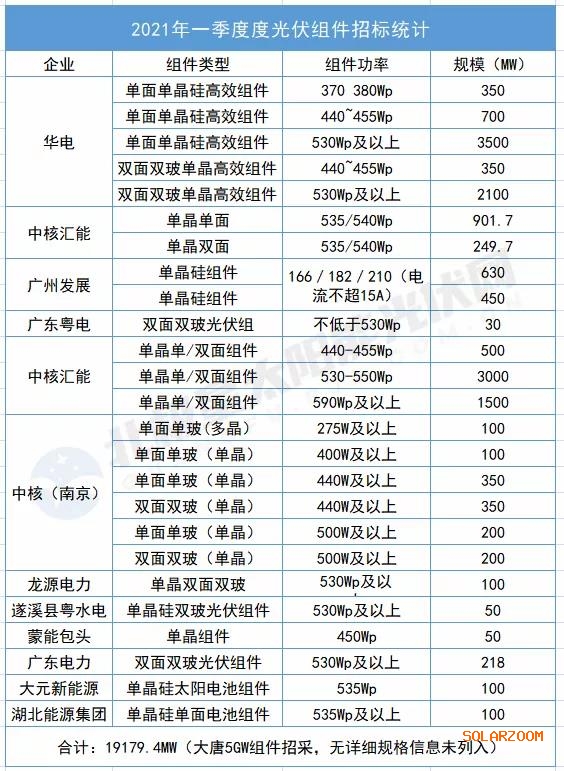 2021年2月9日,另一大央企華電發布2021年第一批單晶硅光伏組件集中采購公告,其中,530W及以上規格組件招標規模為5.6GW,占比高達80%。