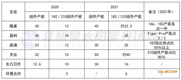 光伏頭部企業2020—2021組件產能(數據來企業公開信息)