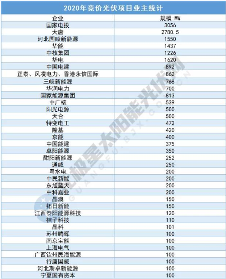 就2020年率先啟動的并網主力項目,北極星太陽能光伏網梳理如下: