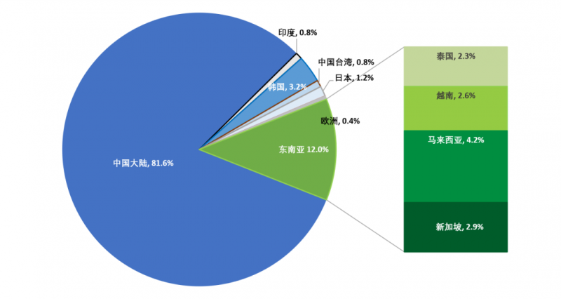 中國大陸電池片產量占比保持在80%以上