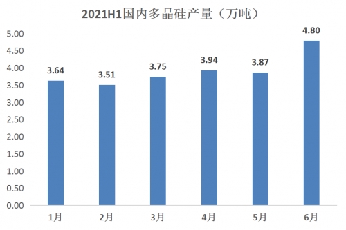 從硅業(yè)分會(huì)2021年上半年預(yù)計(jì)的硅片產(chǎn)量來看,硅料需求量合計(jì)約29.8萬噸,而國內(nèi)供給量約為28.1萬噸,供給與需求大致處于緊平衡狀態(tài)。硅片產(chǎn)能的超前超量釋放導(dǎo)致硅料總體需求激增,硅料企業(yè)上半年基本都是滿產(chǎn)運(yùn)營狀態(tài),部分硅料企業(yè)個(gè)別月份綜合開工率更是高達(dá)111%。